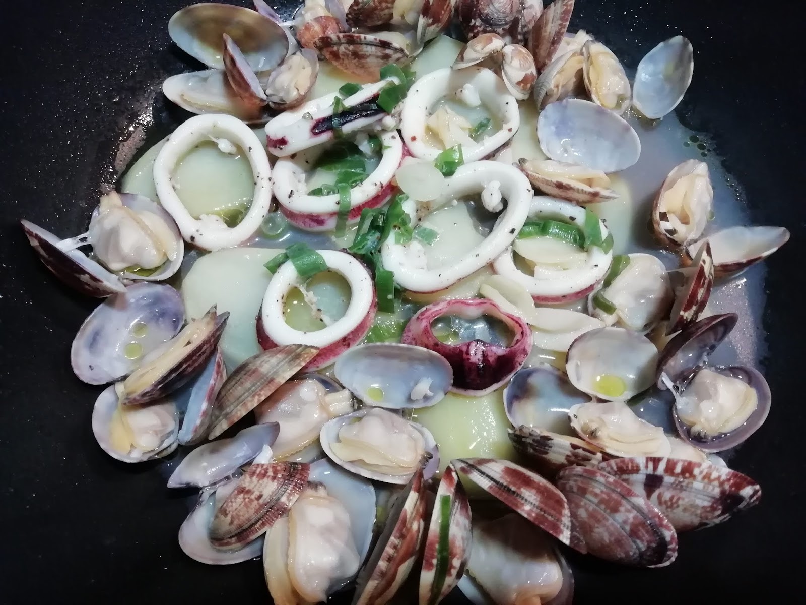 今日はイカとアサリの白ワイン蒸し。