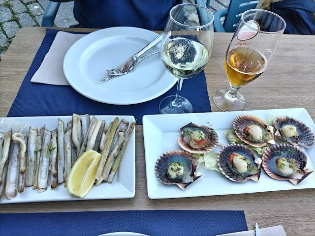 fisterra のレストランの外席にいると、又ふらふら歩いて来るではないか。一緒にコーヒーを飲んだ。なぜか再会するのだ。